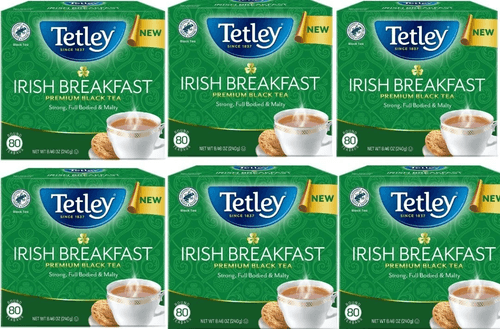 Lot of 6 Tetley Irish Breakfast Premium Black Tea, 80 Bags Each